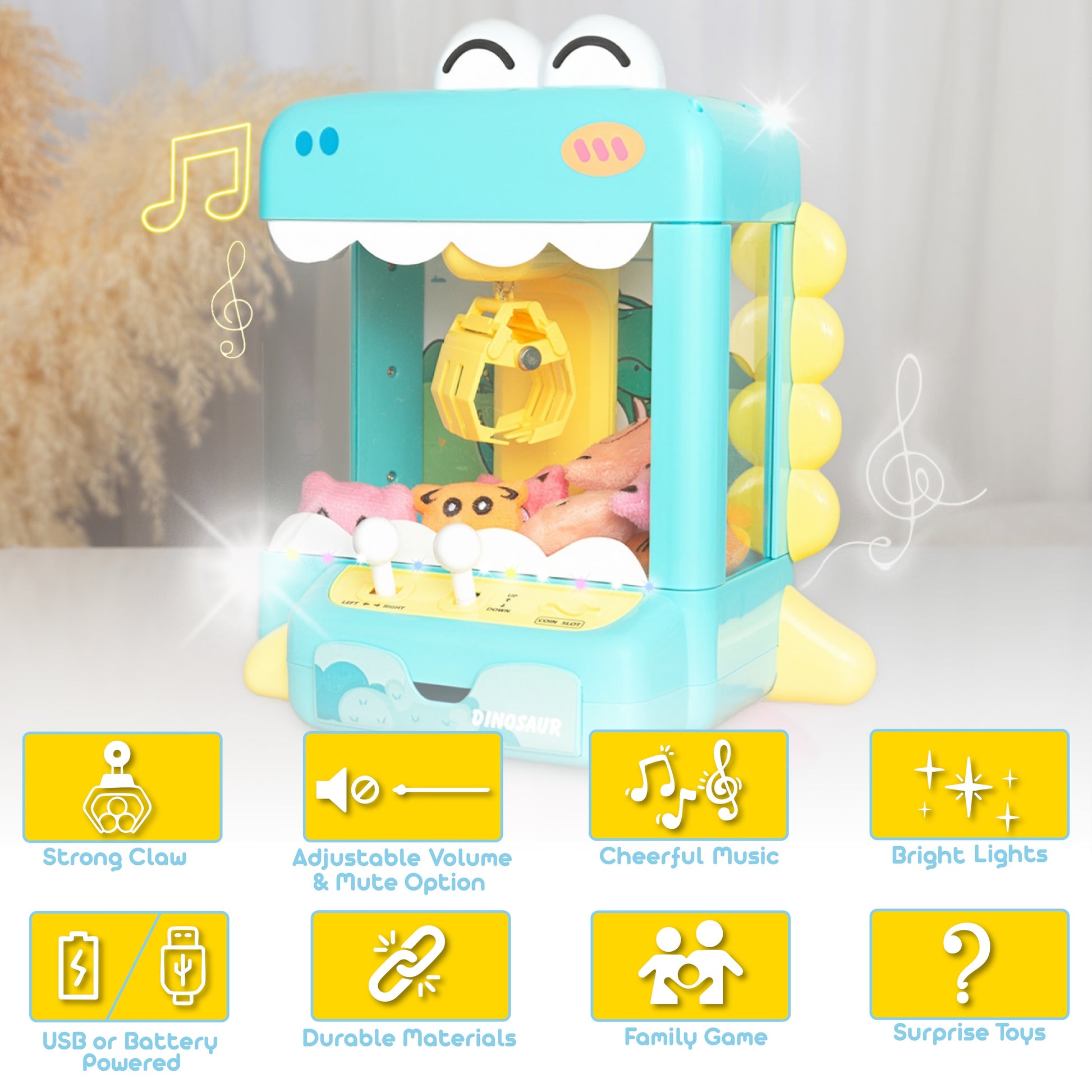 - Claw Machine for Kids - Mini Arcade Game - Vending Machine - Candy Grabber Toys - Silent Mode, Lights, USB - Plush Toys & Easter Eggs, Surprise Stickers - Fun Gift for Kids, Boys & Girls (Dinosaur)