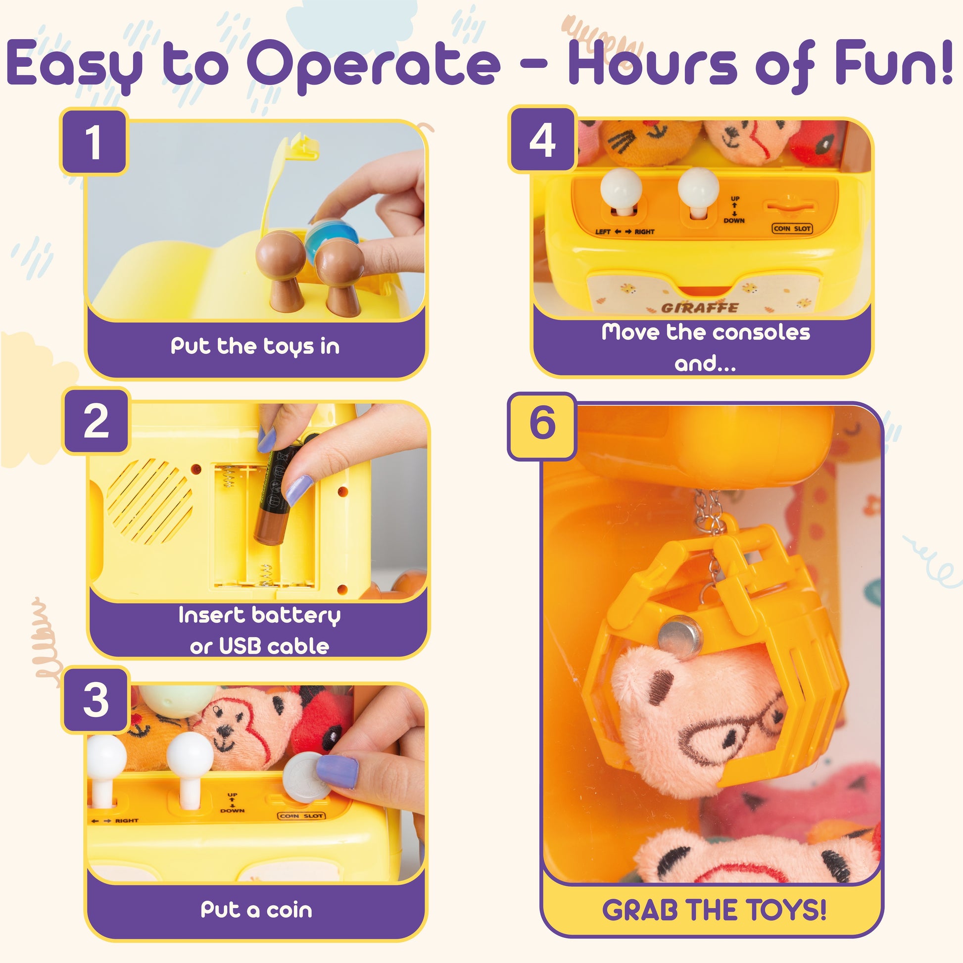 - Claw Machine for Kids - Mini Arcade Game - Vending Machine - Candy Grabber Toys - Silent Mode, Lights, USB - Plush Toys & Easter Eggs, Surprise Stickers - Fun Gift for Kids, Boys & Girls (Giraffe)